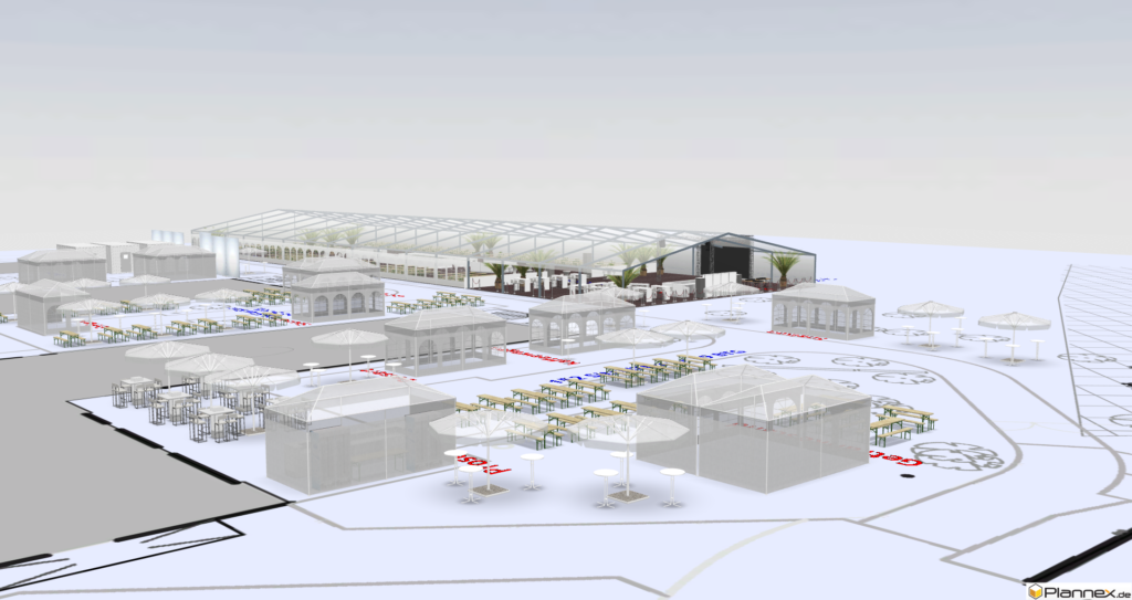 Mithilfe von mehr als tausend Grafikelementen visualisieren wir Ihre Veranstaltung schon in der Planungsphase und stellen die Location in unserem 3-D Planer realitätsnah dar.