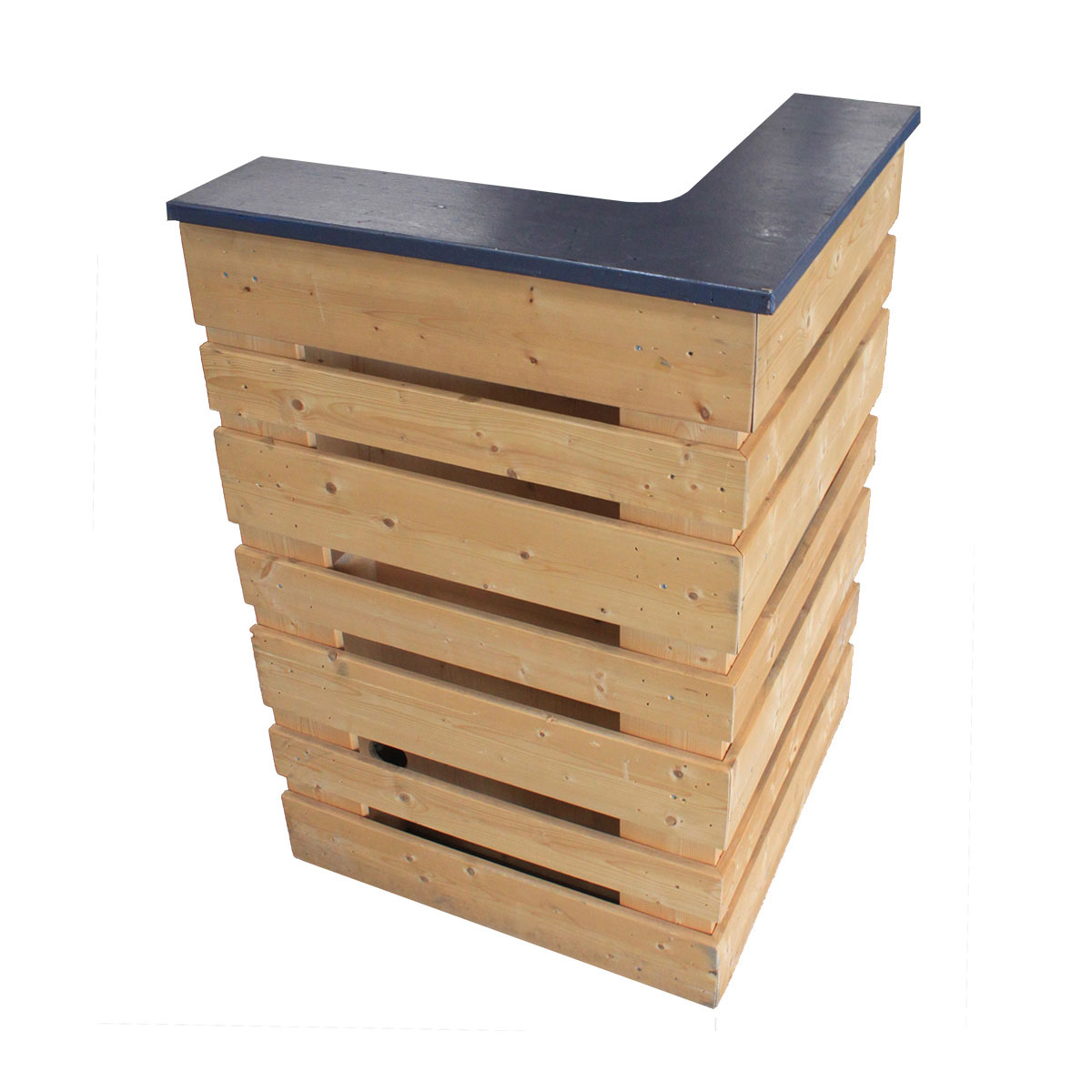 Front als liegende Palette inkl. Arbeitsfläche schräg dreieckig und Thekenplatte